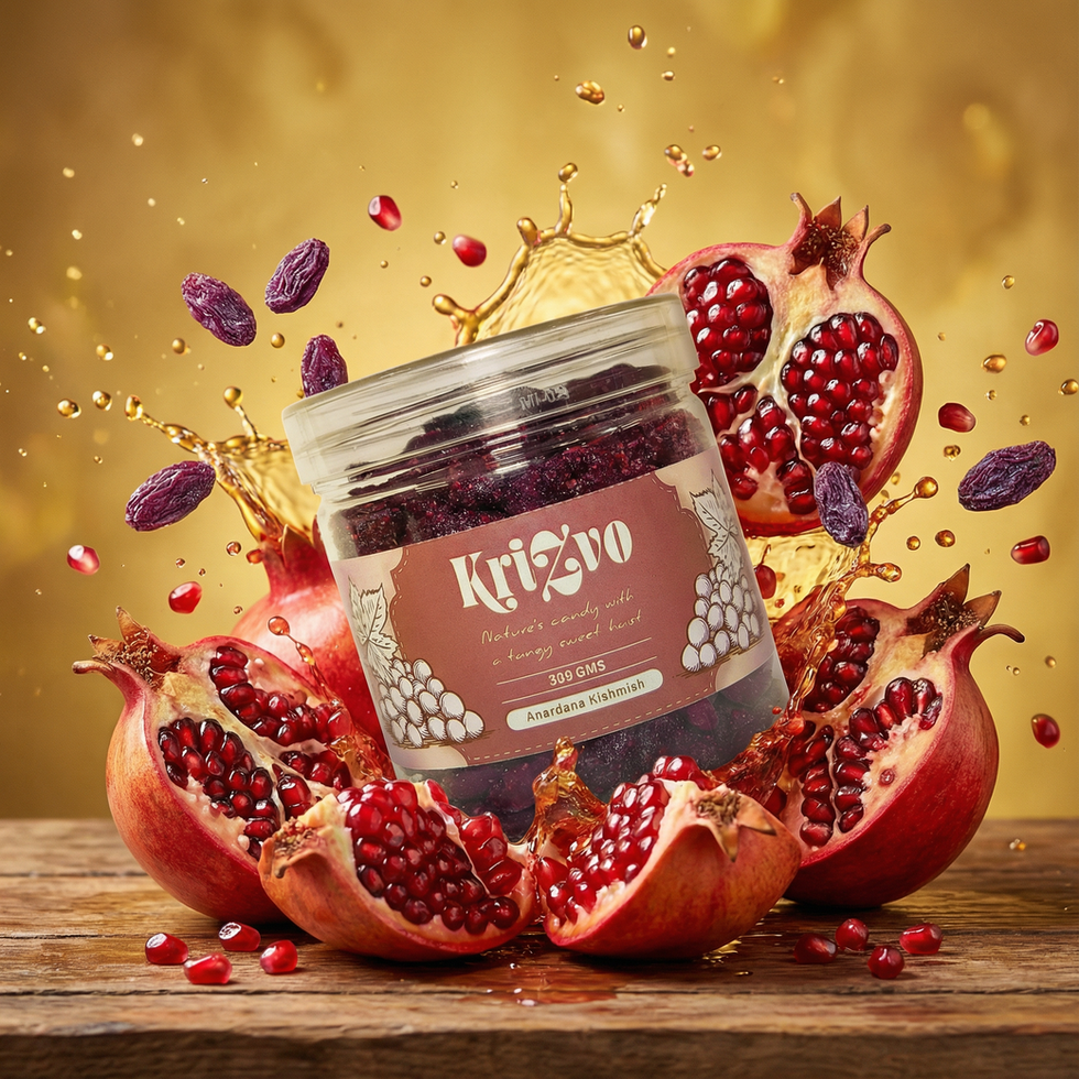 Discover the perfect balance of sweet and tangy with our Anardana Kishmish. Made by blending juicy raisins with the zesty kick of pomegranate seeds, this unique snack is bursting with flavor and natural goodness. Free from preservatives, it makes for a wholesome and delightful treat anytime of the day. The jar contains 210 grams of product, excluding the jar weight, making it a healthy, flavorful, and satisfying snack to enjoy solo or share with loved ones.