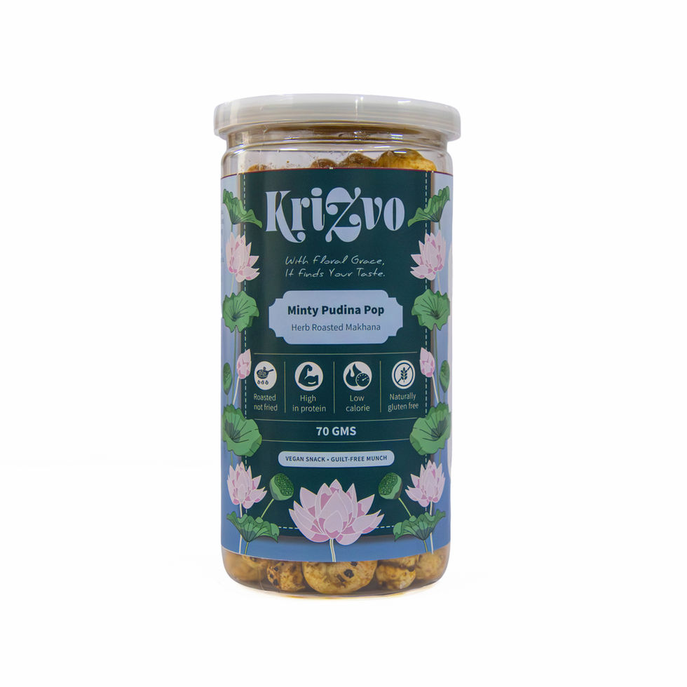 Fresh, light, and delightfully zingy — our Minty Pudina Pop Makhana is your go-to snack when you crave something crisp yet refreshing. Roasted to perfection and dusted with a cool, herby mint-pudina blend, each bite brings a wave of nostalgia with a modern crunch. Low in calories and high in flavour, it’s ideal for guilt-free snacking. Whether you’re binge-watching or working late, this pack delivers cool vibes and crunch in every handful. Snack smart, snack minty!